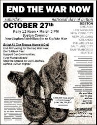 October 27 Boston, MA New England Mobilization to End the War Bring All The Troops Home, Now!