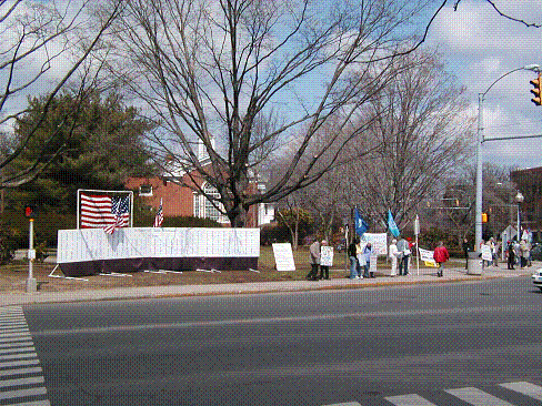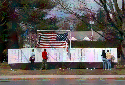 Pictures of the Memorial Wall in West Hartford Center on Saturday March 27th. The display was presented in association with the West Hartford Citizen's Weekly Vigil for Peace and Freedom.