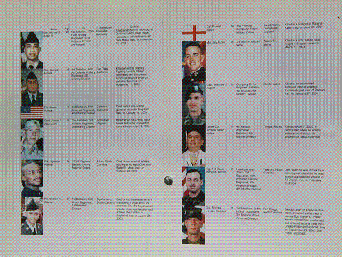 1) Letting us all remember those who have given their lives for the War in Iraq, and